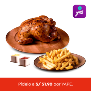 S/72.901 Pollo a la brasa, papas fritas y salsas